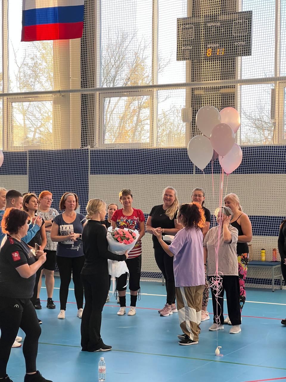 Участники зарядки вместе с тренером Фатиме Наримановной подготовили трогательный сюрприз для Ольги Александровны Торубаровой — поздравили её с прошедшим Днём рождения! 🎂